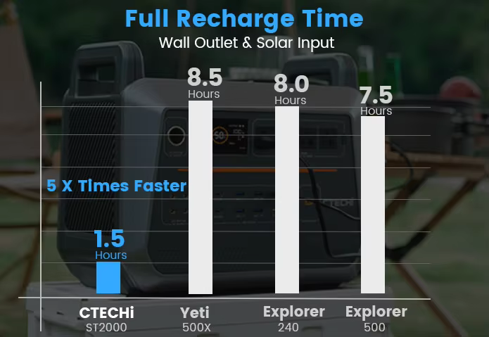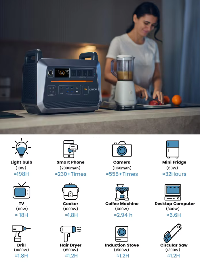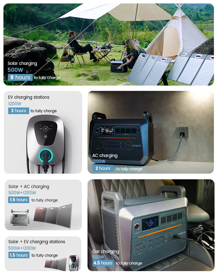Integrated with high-efficiency MPPT technology, this power station supports fast solar panel charging, allowing you to harness renewable energy easily and operate entirely off-grid. Additional PD and QC-enabled USB ports provide high-speed charging for phones, tablets, and laptops.