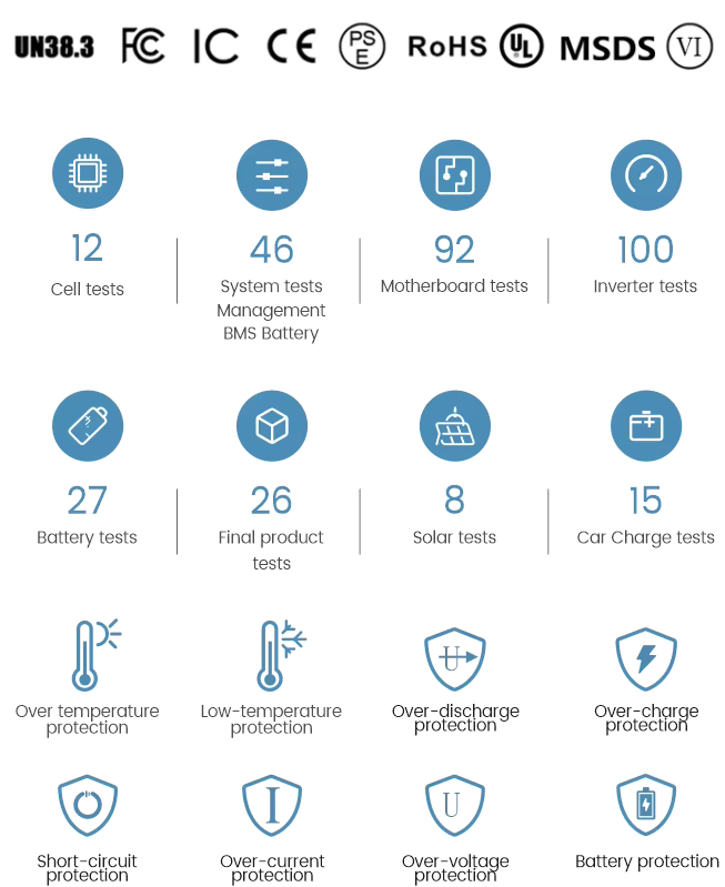 Featuring a rugged yet portable design, an intuitive LCD screen, and multi-protection BMS (over-current, short-circuit, over-temperature), this system is certified to CE, ROHS, and UN38.3 standards—meeting global requirements for safety and reliability.